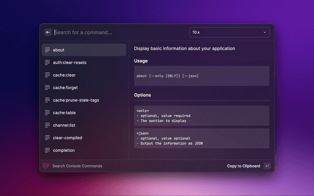 View and search Laravel Artisan commands.