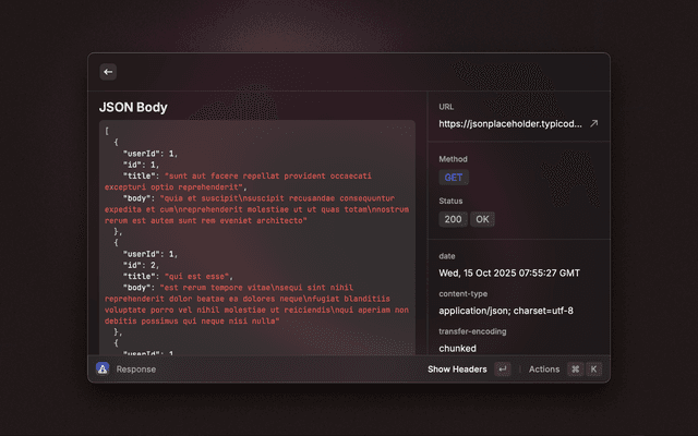 A powerful HTTP client built for Raycast. Test APIs, manage environments, and chain requests - all without leaving your keyboard.
