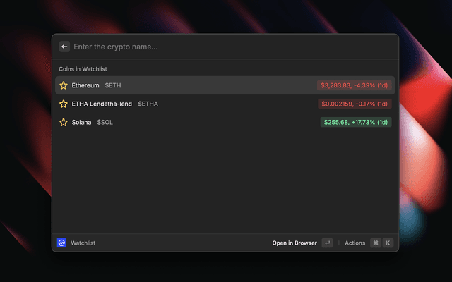 A Raycast plugin for getting the latest price of your favorite coins from CoinMarketCap.