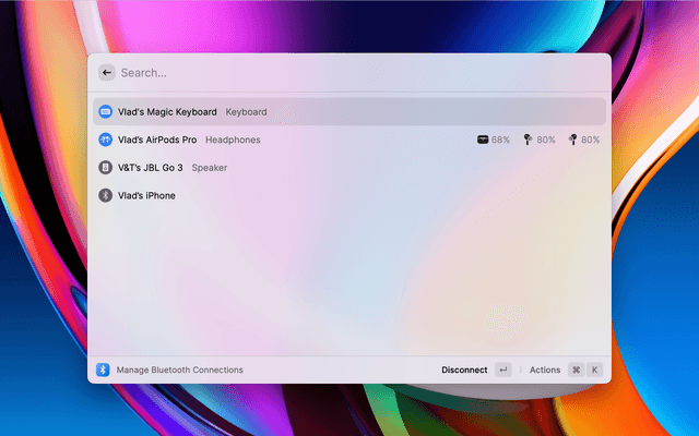This extension lets you control your Bluetooth devices with a few keystrokes.