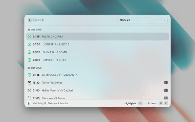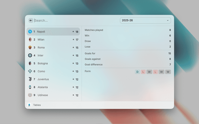 • Fixtures & Results: View upcoming fixtures, recent results, and live match updates for all Serie A games.