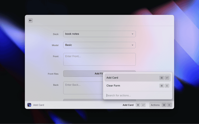 AddAdd a card to a deck in AnkiCreate, Clear Form