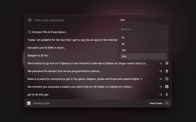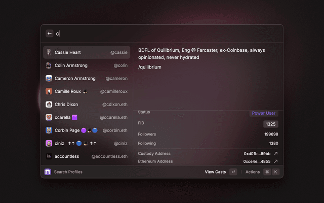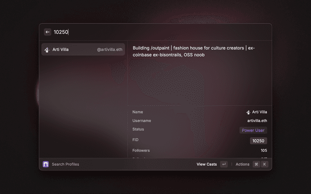 Most comprehensive extension for Farcaster. Search for casts, profiles and explore details.