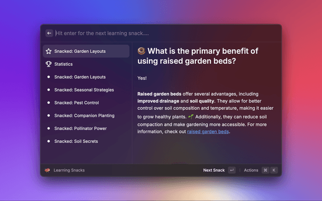 Bite-sized knowledge, on every topic you like, freshly delivered to your Raycast.