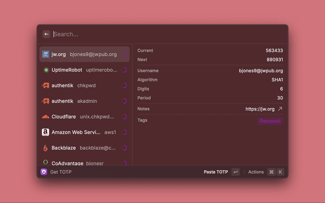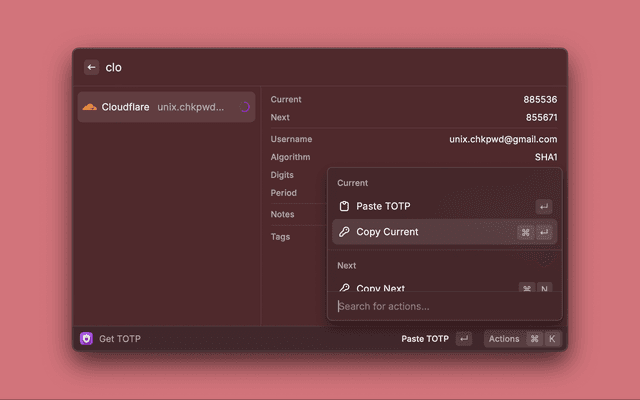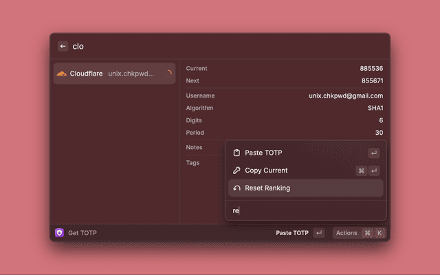 Import Secrets in Raycast.Search for an Ente Auth TOTP account