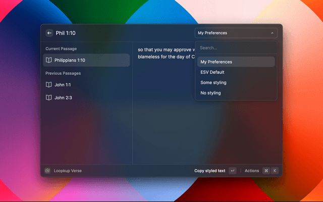 Search the ESV using the ESV A and return Bible text for any valid passage.