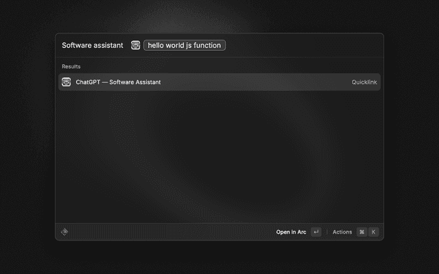 Open ChatGPT in the browser from raycast with your custom prompt and specific query. The extension leverages AppleScript to open a URL and execute JavaScript within a browser tab, automating the process of inserting your prompt and query, and then pressing the submit button. You can create multiple custom commands to open specific GPT versions or to open existing chats, using your custom prompt and an additional query that you provide on the fly while running the command.
