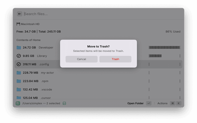 • Size Updates: Automatically recalculates folder sizes when files are deleted