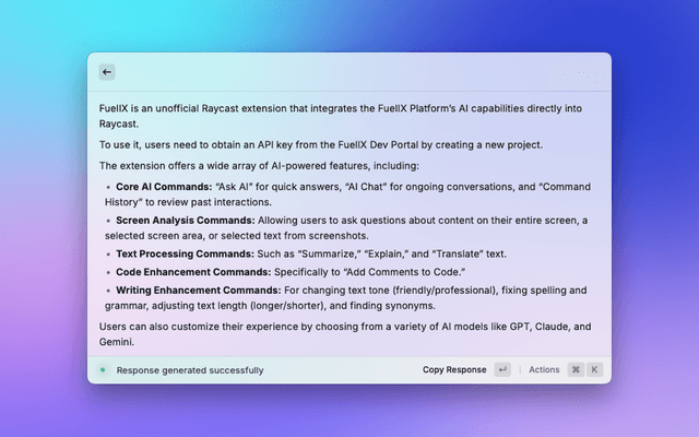 Unofficial support to use Fuelix Platform from the comfort of Raycast