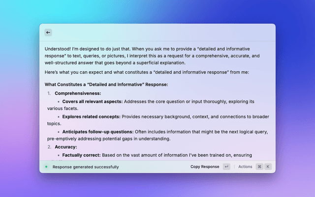Straight from your command bar, ask anything that you wanted and get an AI-generated answer without any effort.