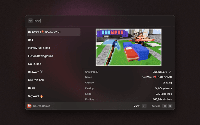 Raycast Extension for finding games, users & more on Roblox