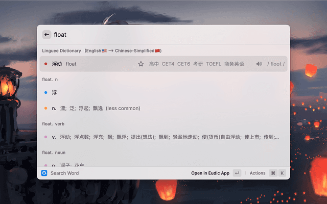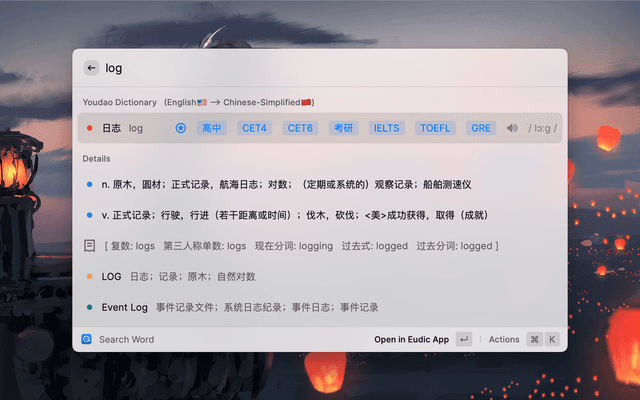 • Support to open the Eudic Dictionary and quickly look up words, if installed on your Mac.