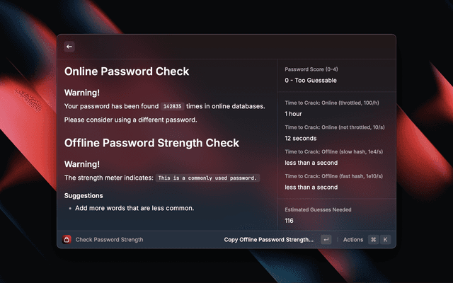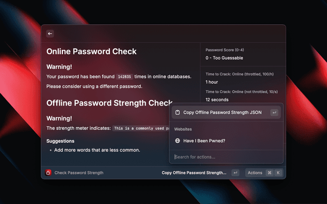 • You can select additional languages to check against. This will check if your password for example matches a common word, first name, last name, etc. in that language