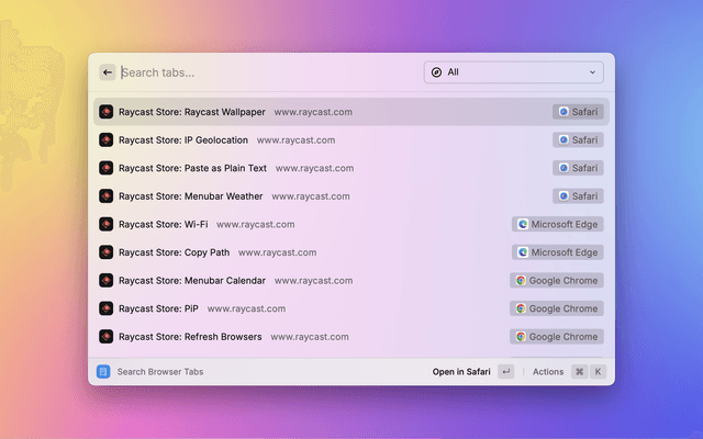 Search and open tabs in Chrome, Safari, Edge, Arc, Brave, Vivaldi, Opera and Orion, etc.