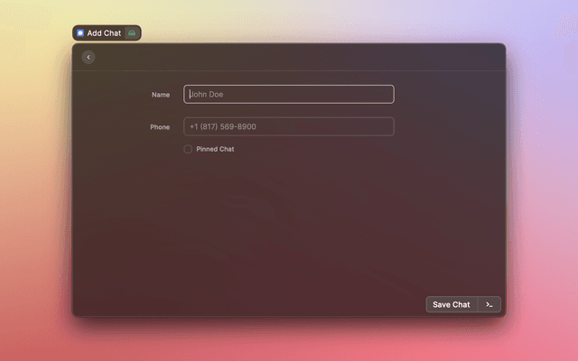 At the time of writing this, Signal does not offer a public API for users. It only provides application links to quickly access already existing chats. Until Signal provides a public API, the Add Chat commands will serve for adding the chats to the extension so users can access them from the Open Chat command.