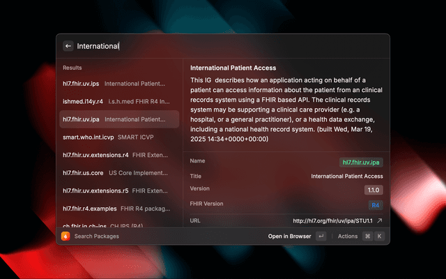 - 📦 FHIR Package Management - Search, discover, and pin FHIR implementation guides and packages from the official registry