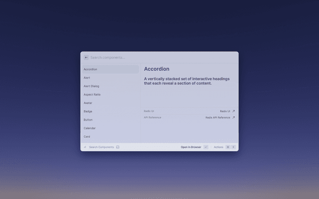 Raycast extension to Browse shadcn/ui documentation, components and examples