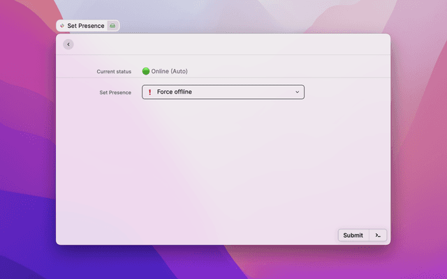 Search for chats, see unread messages, snooze notifications, and set your presence status.