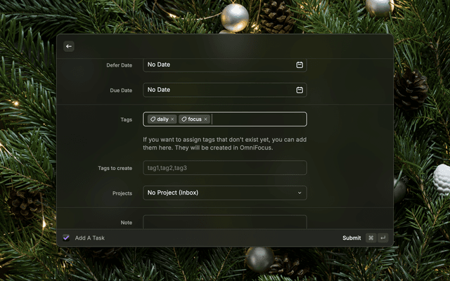 Quickly add a task to your OmniFocus inbox directly from Raycast. Simply type your task and hit enter.