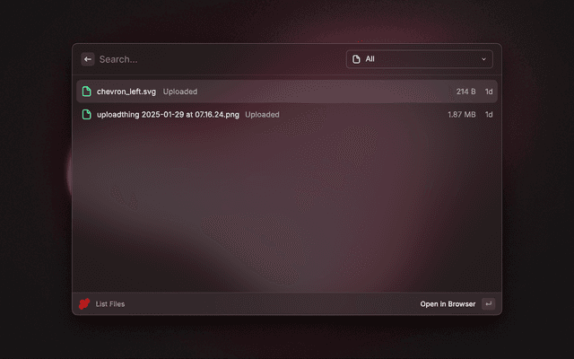 In order to use this extension, you need to have an account on UploadThing and an API key. You can get one by signing up here, then going to the API Keys tab in your dashboard.