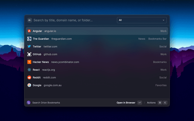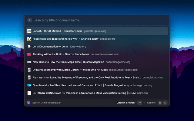 Manage your Orion Bookmarks, History, Tabs, and Reading list