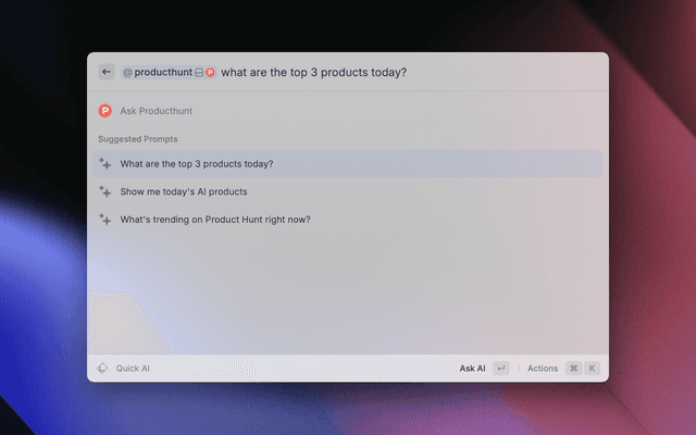 • Get Today's Featured Products - AI command to quickly fetch the latest products from Product Hunt