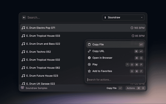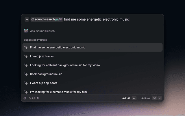Sound Search is a Raycast extension designed to help anyone—artists, creators, filmmakers, advocates, and more—quickly find the perfect sound or music sample for any purpose. Whether you're making videos, podcasts, campaigns, or just looking for creative inspiration, Sound Search enables you to discover quality samples from curated sources to fit your needs.