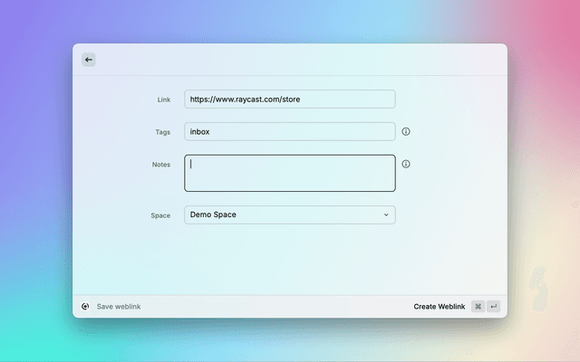 You can use markdown, add tags, create content and more, all from Raycast. See more here.