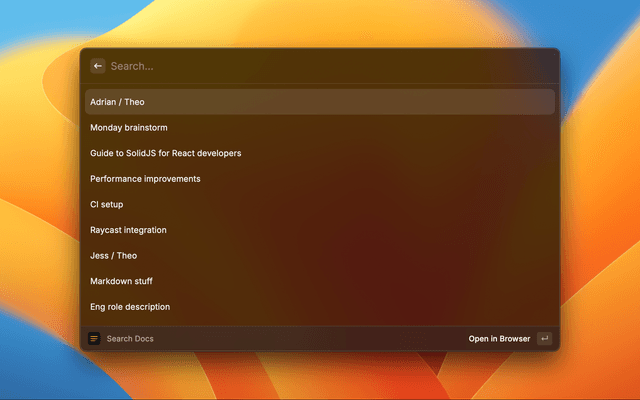 The Create Doc command creates a new document and opens it in your browser. You don't need a Stashpad Docs account to create documents.