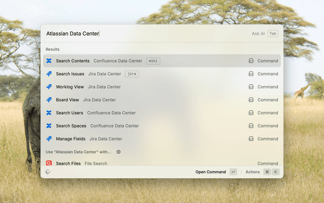 A Raycast extension for Atlassian Data Center products to search and manage Confluence and Jira, with CQL/JQL syntax support.