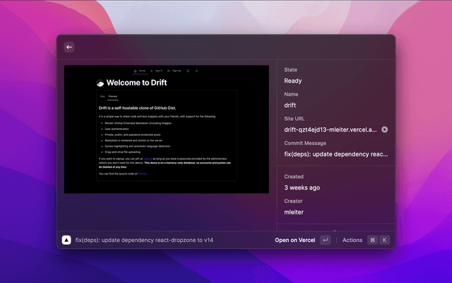 The Vercel REST API docs and Raycast developer docs are good places to start. Feel free to open an issue or ping me on Twitter if you want to help out.