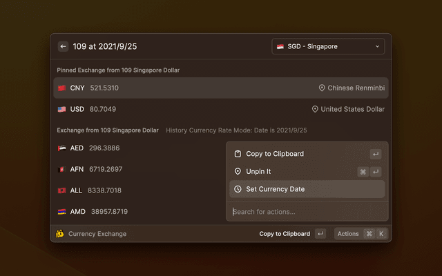 • Support find target currency by filter, format: ${expression} in ${filter key word}