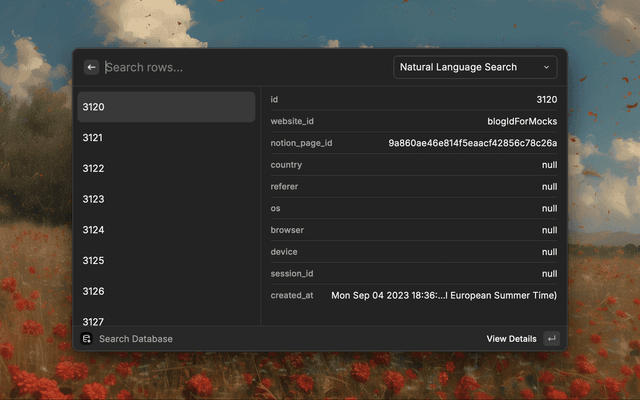 • Filter database rows with natural language search, using AI to generate the Sql query